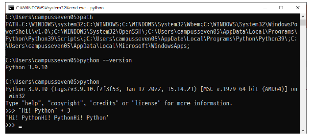 - (+) 생성된 파이썬 파일을 cmd(명령 프롬프트) 창에서 명령으로 실행 (파일 폴더 주소 > 파일 폴더 명)